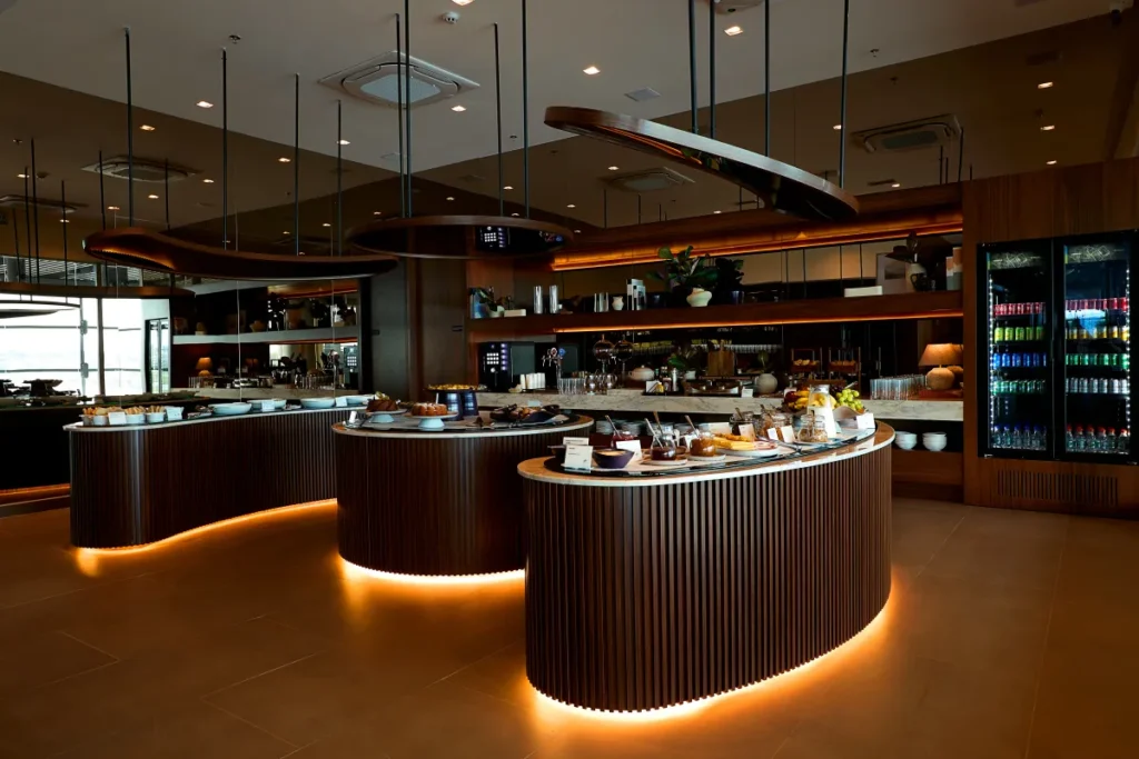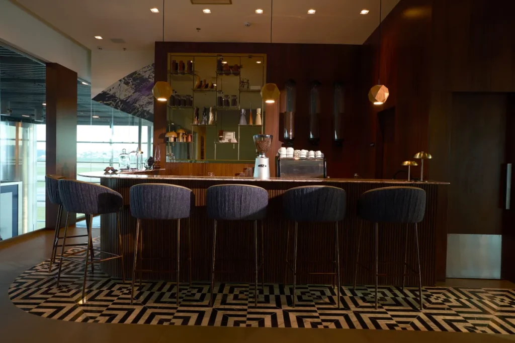 - Mezanino: Vista panorâmica da pista de decolagem, bar com carta de drinks e um buffet inspirado em destinos internacionais. O destaque fica por conta do Coffee Bar do Santo Grão, uma das referências em café no Brasil.